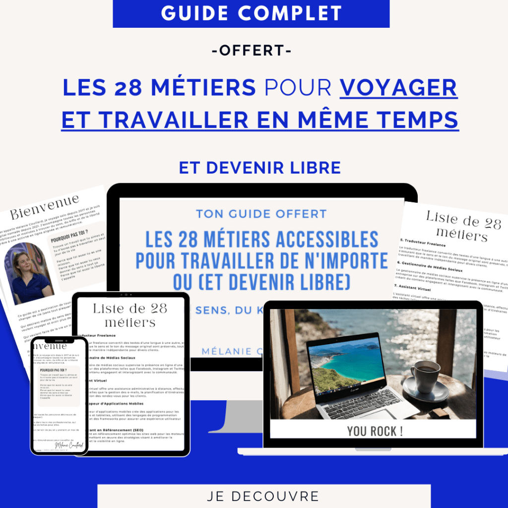 Tu peux également choisir de séjourner en hôtel, en AirBnb, mais aussi en auberge de jeunesse, chez des amis, ou travailler simplement depuis chez toi en te rendant de temps en temps dans un coworking afin d’étoffer ton réseau
